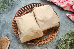 Отрежьте прямоугольник у пергамента, выложите на середину отлету. Согните края со всех сторон, чтобы получился конвертик. Чтобы бумага не раскрывалась, скрепите степлером.