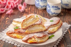 Достаньте готовые сочники из духовки, остудите их. Присыпьте сахарной пудрой.