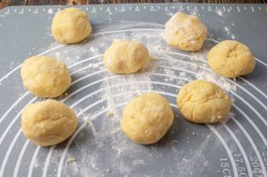 По истечении времени достаньте тесто из холодильника. Разделите на 8-10 равных частей. Скатайте из них шарики.