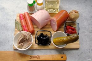 Подготовьте все ингредиенты для приготовления солянки "Селянки".