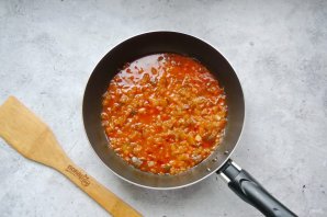 Добавьте огурец с луком и томатной пастой.