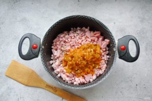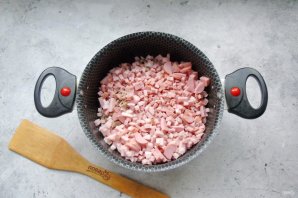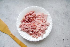 Колбасные изделия также мелко нарежьте.