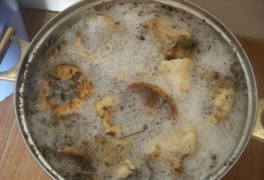 Грибы моем и чистим. Отвариваем в подсоленной воде 10 минут.