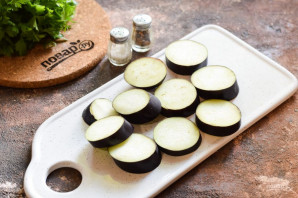 Баклажан ополосните и просушите, после нарежьте его кружочками.