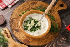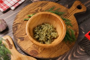 Затем добавьте давленый чеснок и измельчённый укроп.