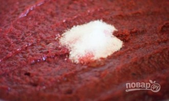 Крыжовник выложите в кастрюлю, добавьте к ним воду. Варите ягоды до размягчения. Потом протрите их, оставив пюре. А по нему пройдитесь блендером, всыпьте соль.