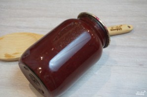 Разлейте соус по стерильным банкам и закатайте крышки.
