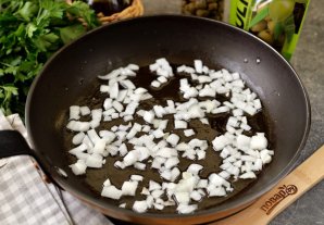 Разогрейте в сковороде растительное масло, обжарьте на нем нарезанный мелким кубиком лук.