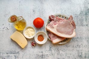 Подготовьте все необходимые ингредиенты для приготовления стейков из свинины с сыром и помидорами в духовке. Помидоры вымойте и обсушите.