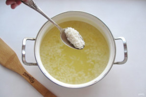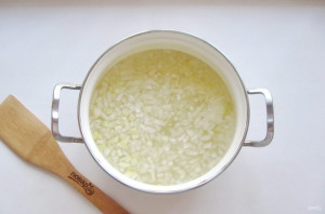 Через 10-15 минут добавьте в кастрюлю промытый рис.