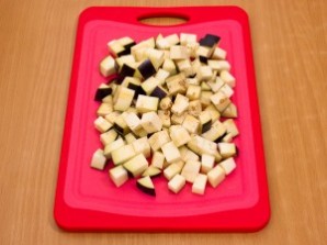 Нарежьте кубиками баклажаны.