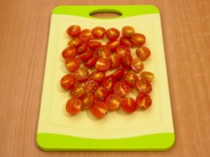 Помидоры черри режем пополам.