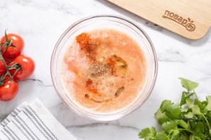 Перед подачей посыпьте суп мелко порезанной кинзой. Суп «Кровавая Мэри» готов, приятного вам аппетита!