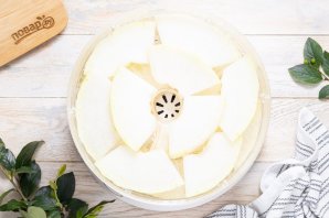 Разложите ломтики на поддоны электрической сушилки в один слой. Сушите при температуре 55-65 градусов около 12-16 часов. Во время сушки можно переворачивать ломтики и менять местами поддоны, чтобы дыня быстрее просушилась.