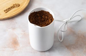 Зерна кофе смолите в кофемолке.