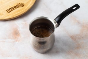 Переложите кофейную смесь в турку. Влейте холодную воду. На среднем огне доведите до кипения и варите 2-4 минуты.