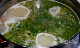 Варите бульон ещё 5 минут. Посолите и поперчите суп по вкусу.