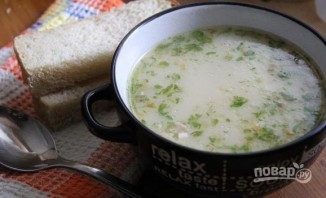 Как только картофель будет почти готов, добавьте в бульон зажарку, сыр и мелко нарезанную зелень.