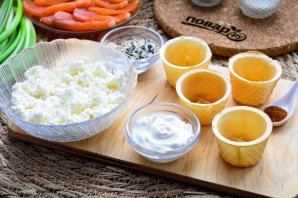 Подготовьте все ингредиенты для приготовления тарталеток с творогом и форелью.