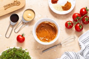 Смешайте арахисовую пасту с вустерским соусом. Добавьте немного воды (1-2 ч.л.), чтобы довести смесь до однородной консистенции средней густоты.
