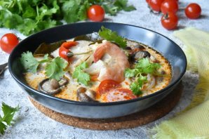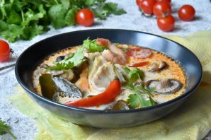 Идеально для обеда. Рыбный бульон придает супу "Том Ям" полноценный морской оттенок и делает суп более интересным и питательным. Тайский суп не подогревают повторно, поэтому готовить его рекомендуется на один раз Подавайте суп горячим.