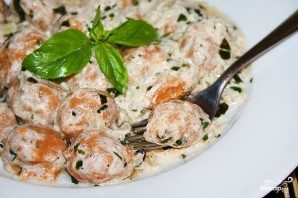 Кладем клецки в кипящую воду и варим 3 минуты после всплытия. Отваренные клецки смешиваем с приготовленным соусом и подаем, украсив свежим базиликом. Готово!