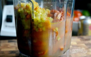 4. Когда всё будет готово, поместите все овощи в блендер. Также добавьте карри, бульон, соль, перец и вино. Взбейте ингредиенты в единую консистенцию.