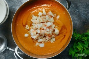 5. Отварите в течение 2-х минут, а потом почистите креветки. Кстати, воду из-под них можно использовать в качестве бульона. Нарежьте креветки и закиньте в суп.