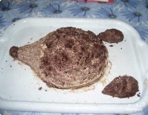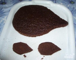3. Сгущенку хорошо взбить со сливочным маслом и добавить в часть крема измельченные коржи, которые остались после вырезки шаблона. Из получившейся массы нужно сформировать тело и мордочку ежа.