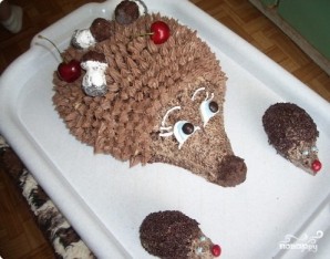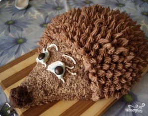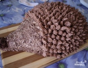 6. Торт "Ежик" в домашних условиях готов. Его нужно отправить в холодильник минимум на 2 часа, чтобы крем хорошо застыл, а коржи пропитались. Затем можно положить ежику на спину свежие или консервированные ягоды и подавать его к столу.