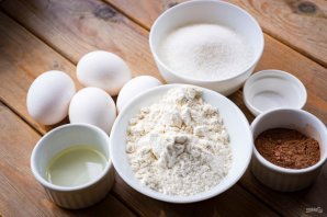 Подготовьте необходимые ингредиенты для приготовления бисквита.