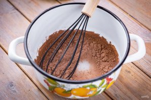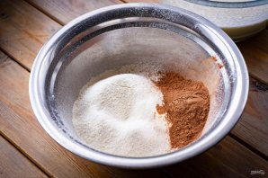 В отдельную сухую миску просейте всю муку и добавьте 2 ст.л. какао.