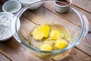 В просторную миску вбейте все яйца и добавьте щепотку соли.