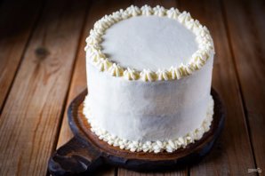 Приготовленным кремом покройте верх и бока тортика.