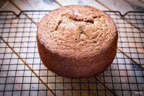Готовый бисквит полностью охладите на решетке. У меня бисквит получился высотой около 10 см.