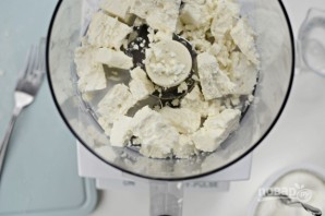 5. В это время сделайте соус. В блендер выложите сыр и сливки.