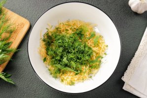 Добавьте любую свежую ароматную зелень. Зелень предварительно промойте, обсушите и нарубите ножом.