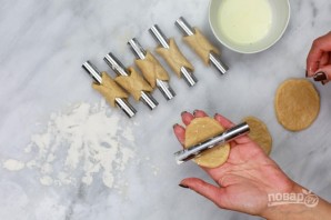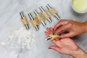 4. Каждый раскатайте немного и оберните вокруг насадки-трубочки.