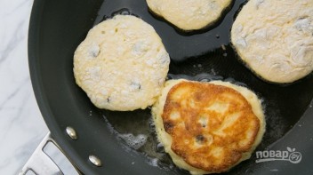 8. Разогрейте сковороду с растительным маслом, а затем выложите творожники. Обжаривайте каждый с двух сторон до румяного цвета.