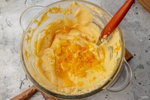 С лимона и апельсина натрите цедру, а также мякоть апельсина нарежьте мелко. Добавьте их в тыквенно-творожную массу, перемешайте.