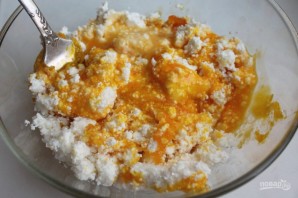 Добавьте яичные желтки и перемешайте.