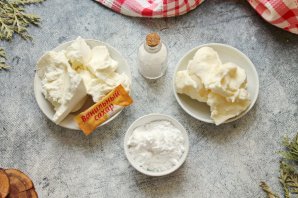 Подготовьте все необходимые ингредиенты для приготовления творожного крема для торта. Сливочное масло достаньте из холодильника заранее, чтобы стало мягким.