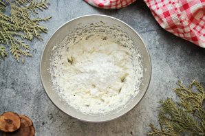 Добавьте в массу ванильный сахар и сахарную пудру. Взбейте все до однородного, пышного крема. Можно сразу использовать крем по назначению.