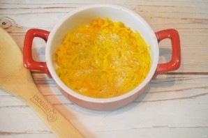 3. В смазанную маслом жаропрочную форму выложите часть тыквы.