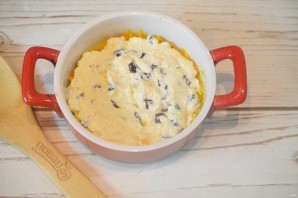 5. Выложите запеканку слоями, чередуя тыкву и творог. Последним слоем должна быть тыква. Запекайте при 180 градусах около 30 минут.