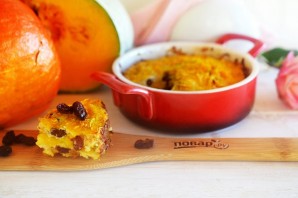 Тыква, запеченная с творогом и изюмом