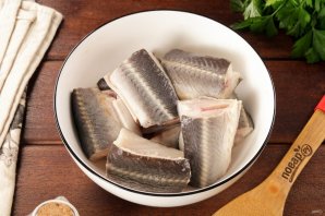 Нарежьте подготовленную стерлядь на части, каждую на 3-4 куска.