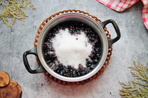 Чернику пересыпьте в таз или в кастрюлю для варенья и засыпьте сахаром. Все хорошо перемешайте.