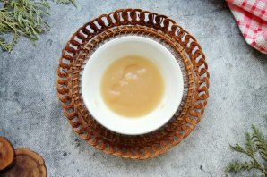 Агар-агар смешайте с кипяченой, холодной водой и оставьте на 15 минут.