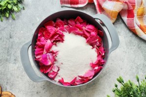 Плотно выложите массу из лепестков роз в банку и закройте.